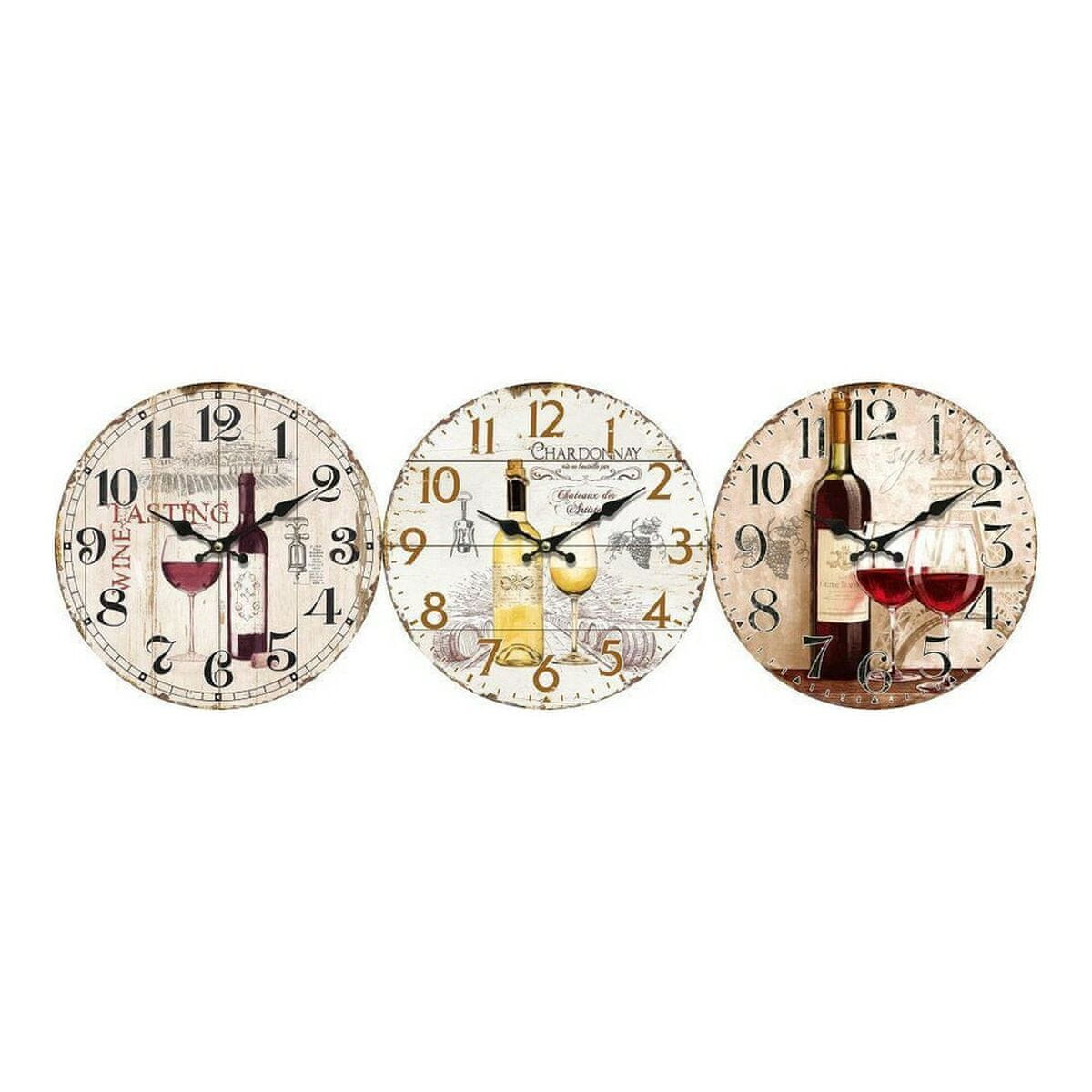 Če radi poskrbite za vsako podrobnost v svojem domu in imate najnovejše izdelke, ki vam bodo olajšali življenje, kupite stensko uro DKD Home Decor Wine MDF Wood (34 × 4 × 34 cm) (3 kosi ) po najboljši ceni.
