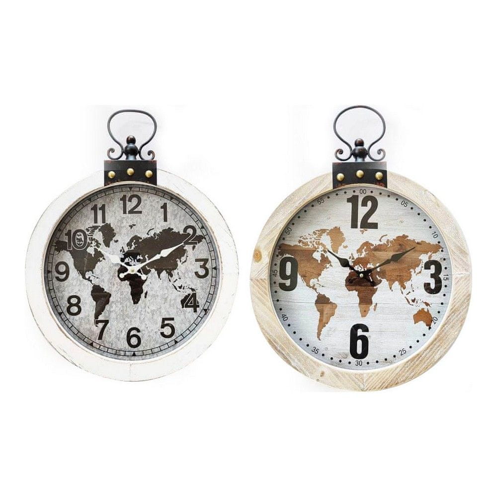 DKD Home Decor Stenska ura DKD Home Decor Črno rjava Iron MDF Wood World Map (40 x 4 x 54 cm) (2 kosa)