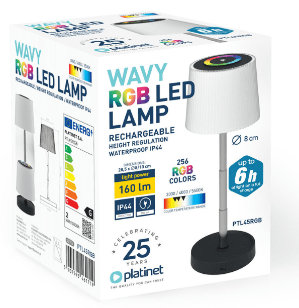 Zmogljiva, stilsko dovršena in napredna namizna LED svetilka Platinet PTL45RGB je popoln dodatek za vsak delovni prostor, mizo, restavracijo, bar, teraso ali okolje. S svojo moderno in minimalistično obliko vam odlično služi kot nočna, okrasna, ambientalna ali delovna svetilka!