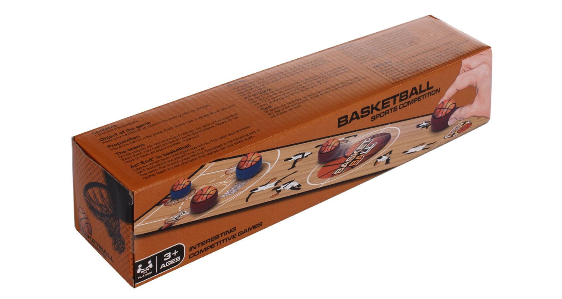 Namizna košarka Merco je preprosta namizna namizna igra, ki bo zabavna tako za otroke kot odrasle. Z drsenjem igralnih kamnov v obliki košarkarskih žog s kovinsko kroglo na dnu se na igralni površini iz filca zadenejo košarkarski koši z različnimi točkovnimi ocenami. Zmaga ekipa, ki zadene več košev in doseže več točk. Igra je shranjena v priročni embalaži, zato je lahko prenosna in jo lahko igrate na ravni površini kjer koli in kadar koli. Z namizno košarko Merco boste uživali v trenutkih zabave in navdušenja. Vsebina paketa: – 1 x igralna površina iz filca velikosti: 120 × 30 cm – 6 x plastični igralni kamen s kovinsko žogico. V dveh barvah, premer kamna je 25 cm – Velikost paketa: 32 × 7 × 7 cm – Teža paketa: 230 g Pravila igre. 4. Po vsakem poskusu se ekipi zamenjata. Ekipa, ki je v prejšnjem krogu dosegla več točk, začne naslednji krog. 5. Točke se štejejo le, če ste zadeli območje košarkarskega koša. Prav tako velja, če ste zadeli obroč koša. 6. Igra se konča, ko so porabljeni vsi kamni in ko so preštete vse točke. Lahko pa se odločite, da boste igrali več krogov in točke prešteli po zaključku vseh krogov. Različica – obrambna igra: branilec postavi svoje tri žoge na zadnjo polovico igrišča, pri čemer eno žogo postavi v območje 100 točk, drugi dve žogi pa kot branilec. Napadajoča stran mora s svojimi tremi žogicami zadeti žogico branilca iz točkovnega območja. Po napadu in obrambi branilci in napadalci zamenjajo polja in nadaljujejo igro. Za uspešno obrambo ali napad se dosodi 1 točka, zmaga pa ekipa, ki prva doseže 10 točk. Igra je namenjena 2–6 igralcem in je primerna za otroke, stare 6 let in več.