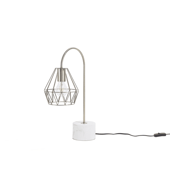 Sodobno oblikovanje na najvišji ravni! Vitke oblike iz medeninaste kovine poudarjajo eleganten videz te namizne svetilke. Diamantno senčilo je sestavljeno iz mreže filigranskih kovinskih nosilcev in zaradi svoje odprte oblike usmerja pogled proti viru svetlobe. Odprta zasnova na stenah ustvarja vznemirljive svetlobne in senčne učinke, krožno marmornato podnožje svetilke pa zagotavlja stabilnost.
