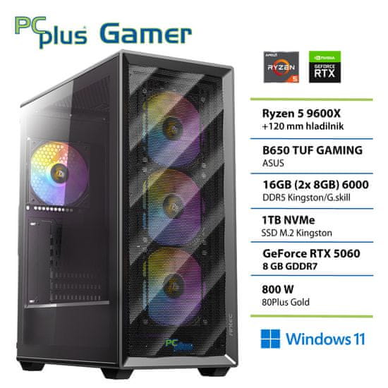 PCPLUS Gamer Ryzen 5 9600X 16GB 1TB NVMe SSD RTX 5060 8GB gaming namizni računalnik Windows 11 Home gaming namizni računalnik