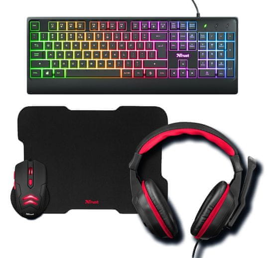 Trust Ziva gaming set, 4 v 1, tipkovnica, miška, podloga, slušalke, črn (24233)