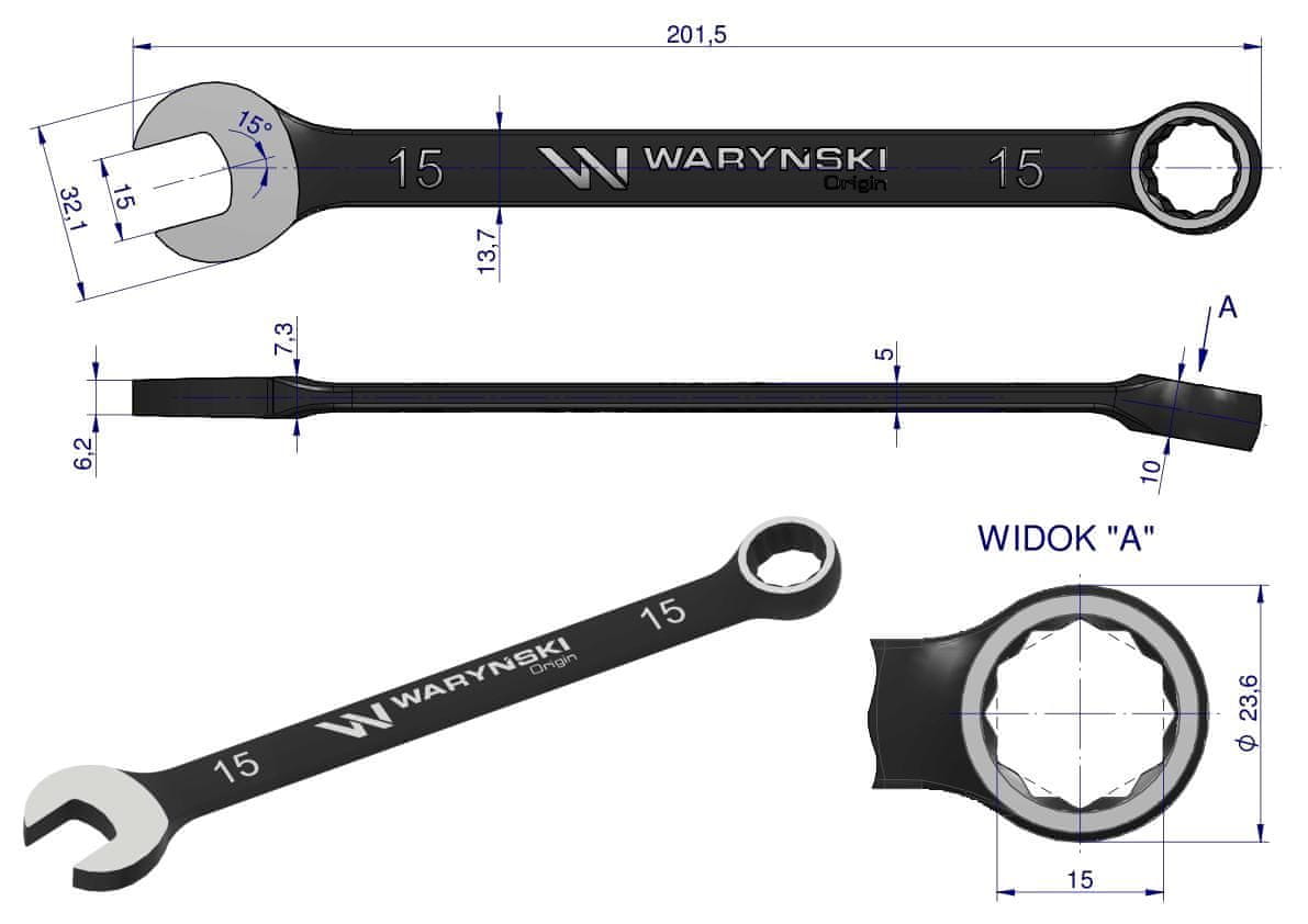 15 mm viličasti ključ. CrV standard ASME B107–2010 Waryński Celoten opis