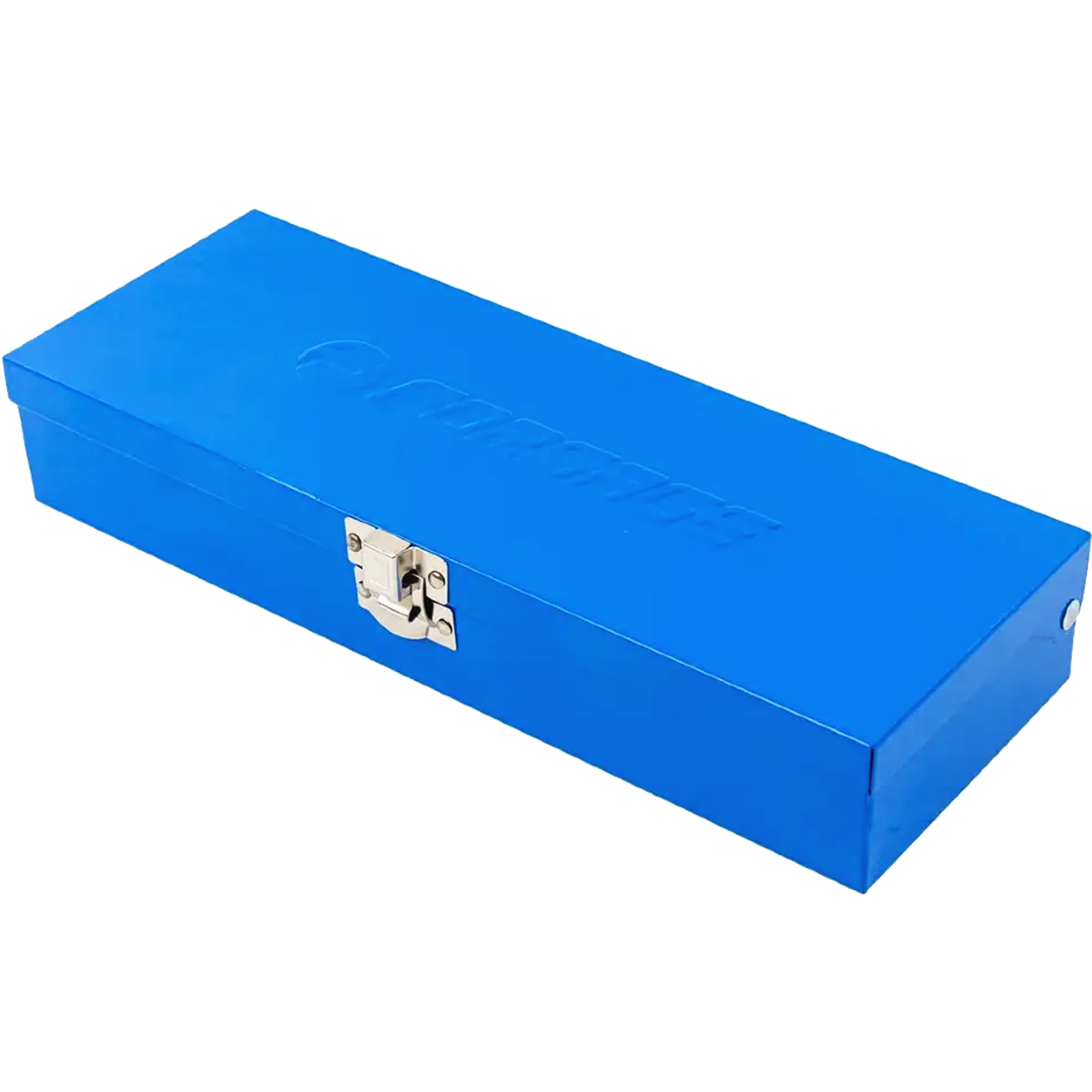 - Komplet je nameščen v trdnem kovinskem kovčku, ki zagotavlja varno shranjevanje, enostaven transport in hitro iskanje prave velikosti nastavkov. Uporaba:
