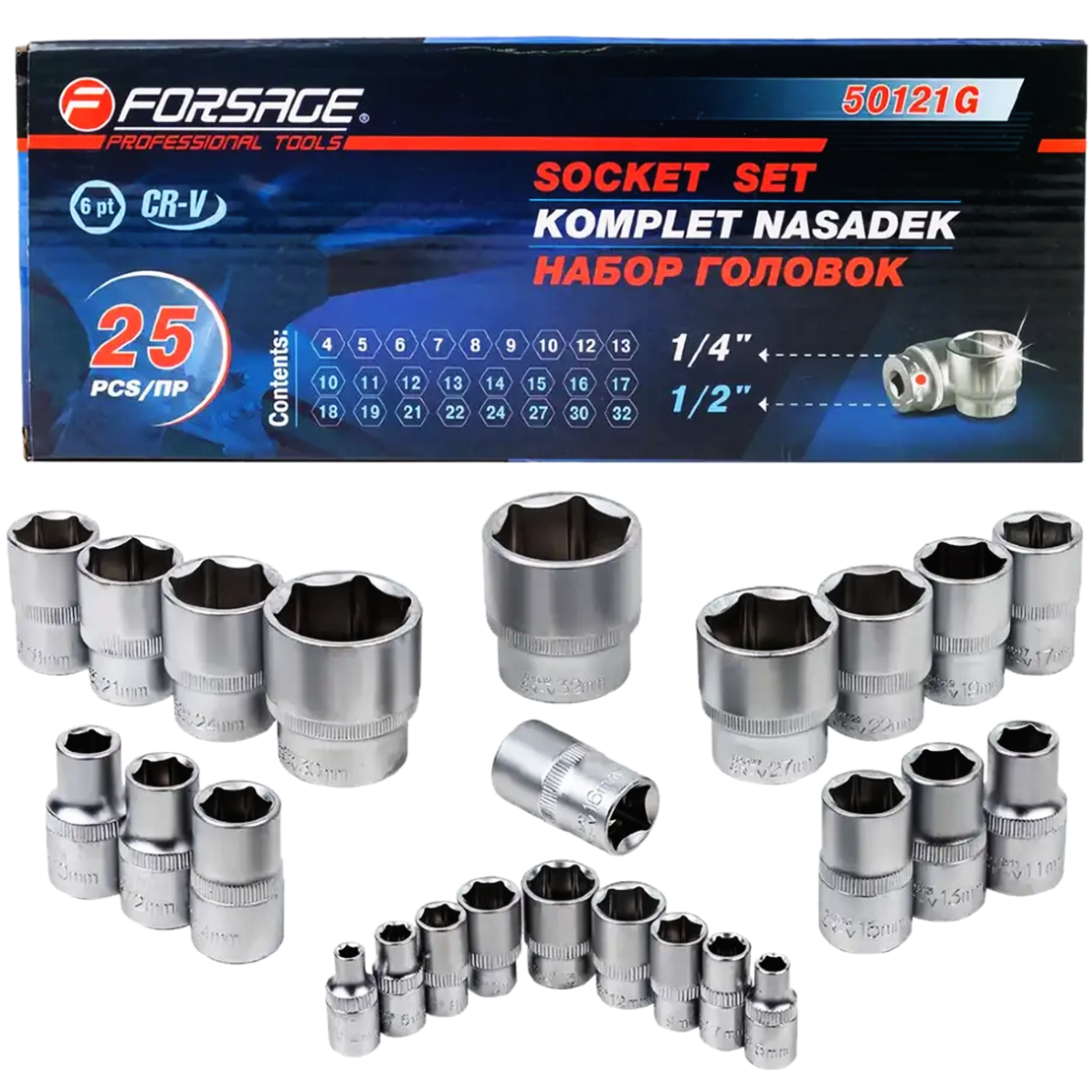 shumee FORSAGE 25-delni komplet šesterokotnih udarnih nastavkov 1/4" 1/2" 4-32 mm