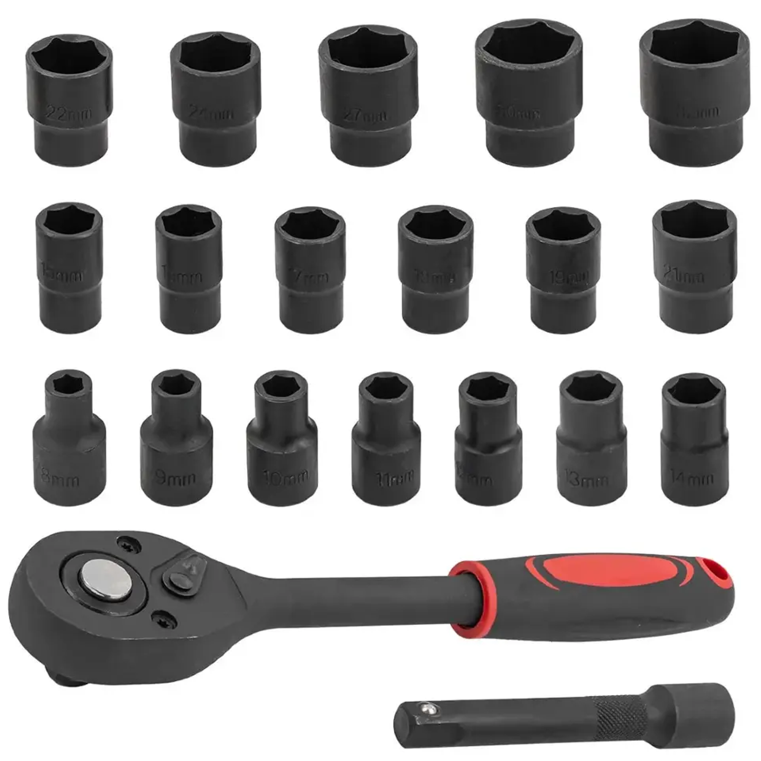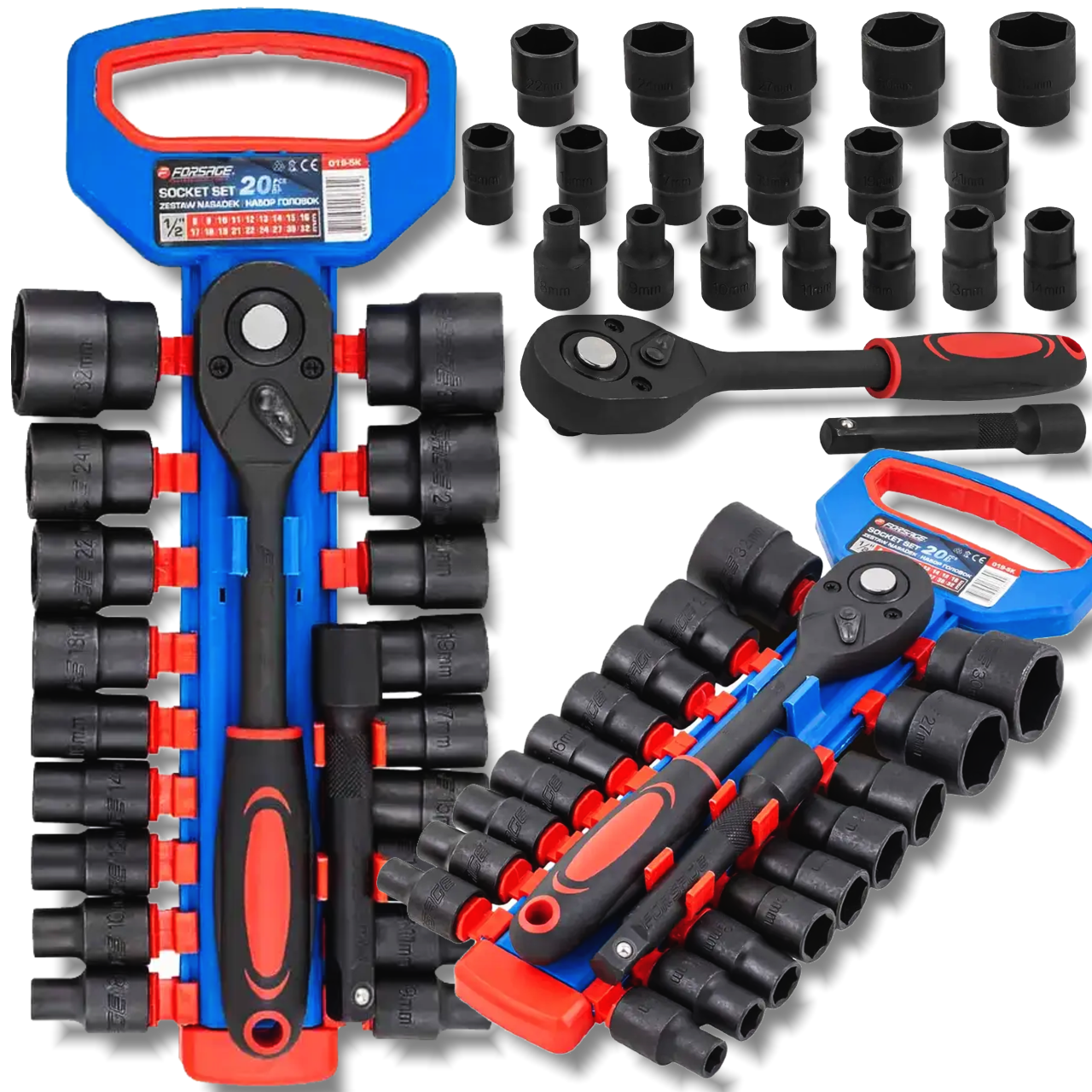 shumee FORSAGE KOMPLET NASADNIH KLJUČEV 1/2" 20-DELNI Z RAGNJO IN PODALJŠKOM 8-32 mm