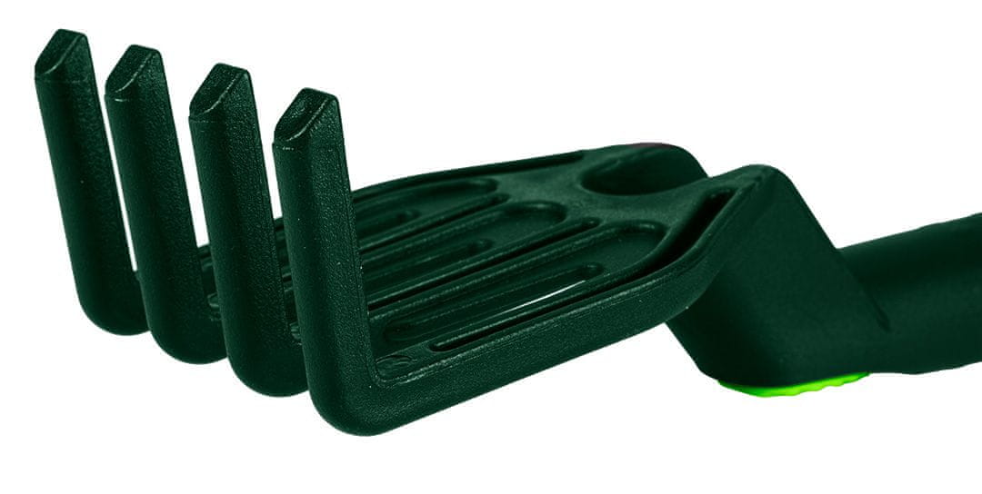 Komplet 4 plastičnih ročnih orodij (grablje, kremplji, lopata, motika/kremplji) Celoten opis