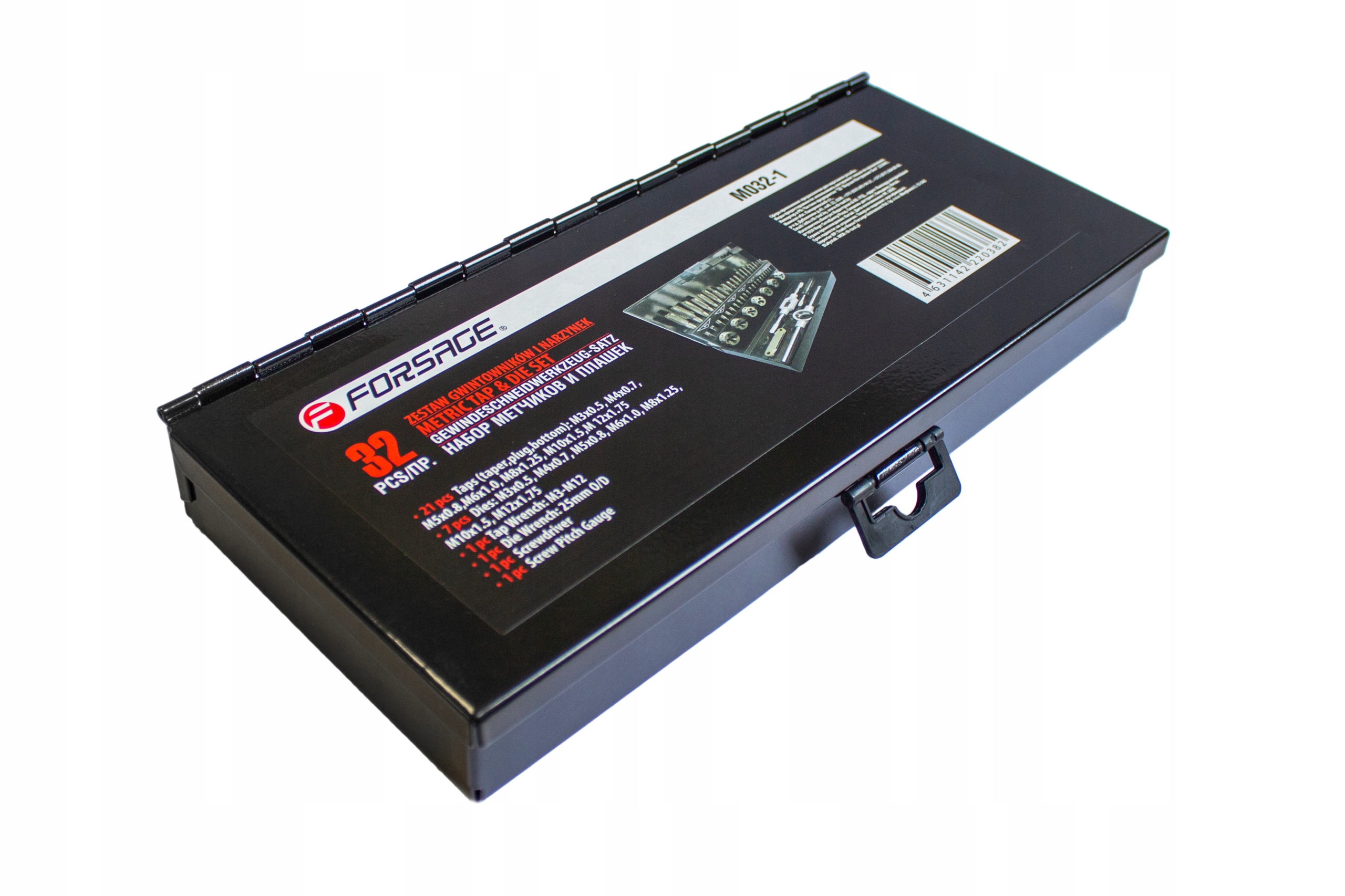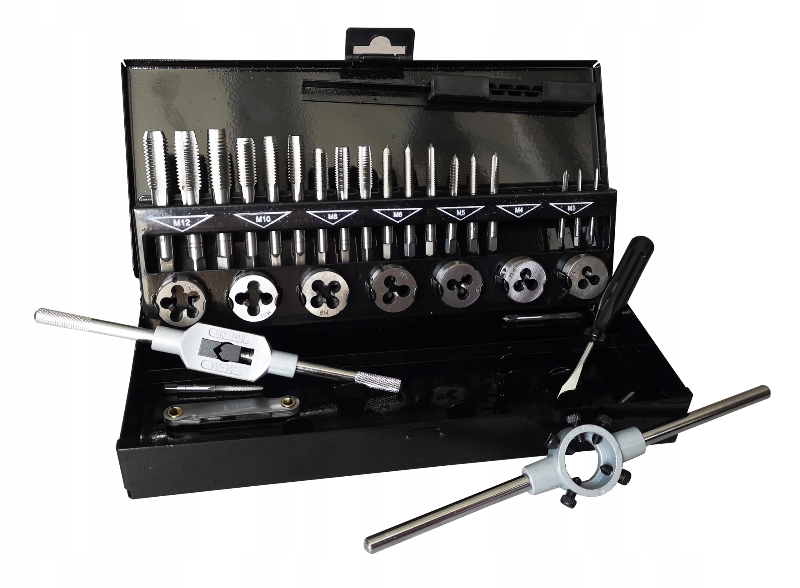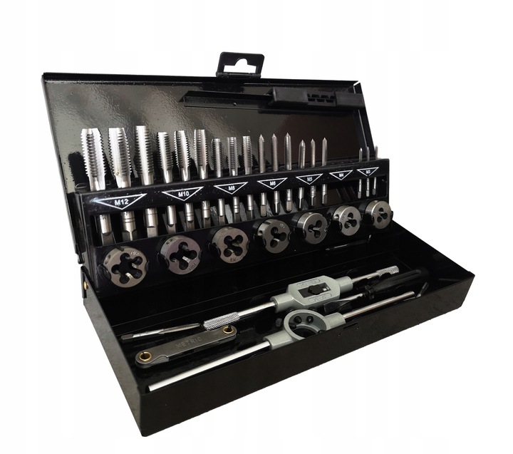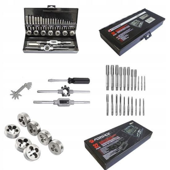 Komplet matric in navojnih svedrov, kovček, 32 kosov Celoten opis
