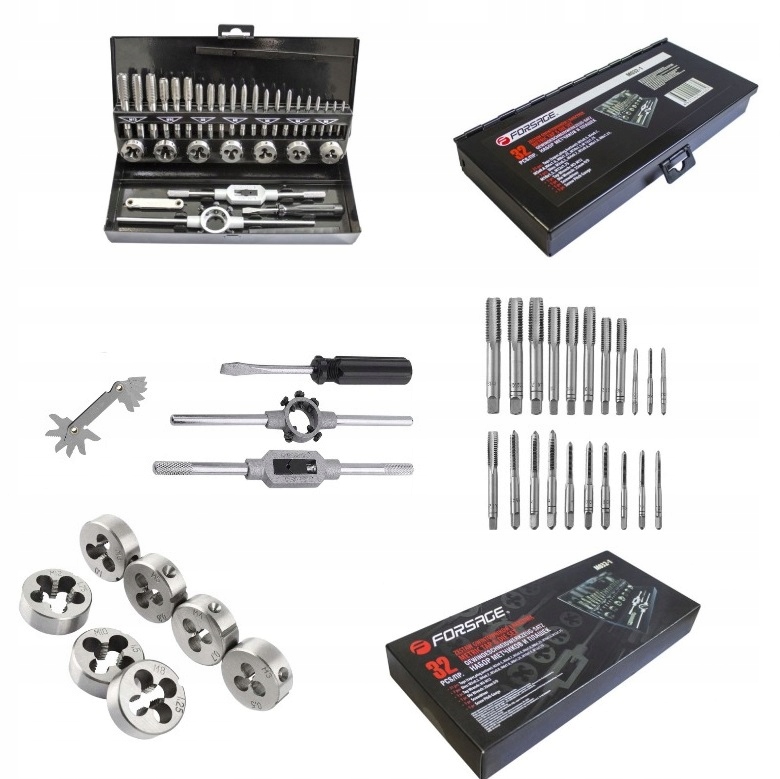 Montaže, avtomobilske delavnice, mehanske delavnice, ključavničarske delavnice. Komplet se uporablja za popravilo navojnih povezav različnih kalibrov.