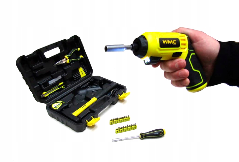• Bitovi so izdelani iz kaljenega jekla. Odlični ključi za amaterje in profesionalce, izdelani iz KROM-VANADIJ materiala, ki zagotavlja visoko kakovost in odpornost proti obrabi. Ta komplet orodja je bil zasnovan tako, da zadovolji potrebe vsakega domačega navdušenca nad domačimi opravili in profesionalnega mojstra. Priloženo orodje bo omogočilo hitro in učinkovito delo tako doma kot v delavnici. Funkcionalni komplet orodja, ki vsebuje najbolj uporabno orodje, nepogrešljivo v vsakem domu ali delavnici. Vse orodje je shranjeno v zelo trpežnem in ergonomskem plastičnem kovčku, ki omogoča enostaven transport in shranjevanje. Akumulatorski izvijač za lažja gospodinjska dela (napetost baterije: 3,6 V, hitrost vrtenja: 0–200 vrt/min, največji navor: 3,5 Nm, kapaciteta baterije: 1,5 Ah, baterija: litij-ionska, čas polnjenja: 3–5 ur, napajalna napetost polnilnika: 220–230 V).