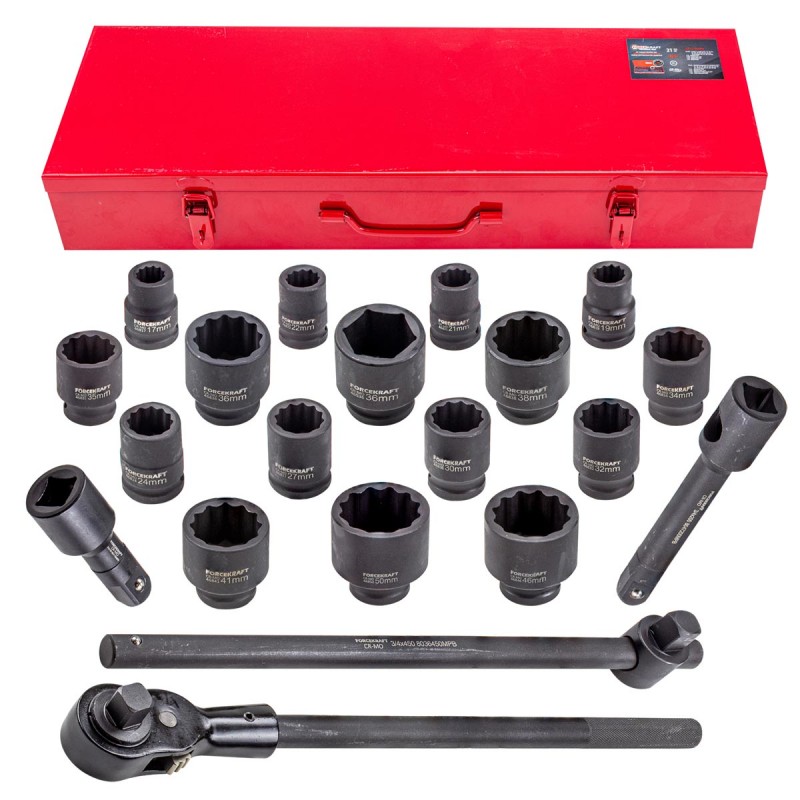 • 3/4" 12-kraki nastavki – 16 kosov: 17, 19, 21, 22, 24, 27, 30, 32, 34, 35,36, ( 36 mm – 6-kraki ), 38 mm, 41 mm, 46 mm, 50 mm;