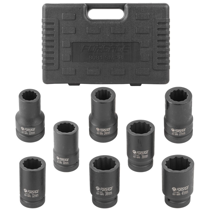 Set je sestavljen iz 8 12-točkovnih ključavnic v velikostih za 1":
