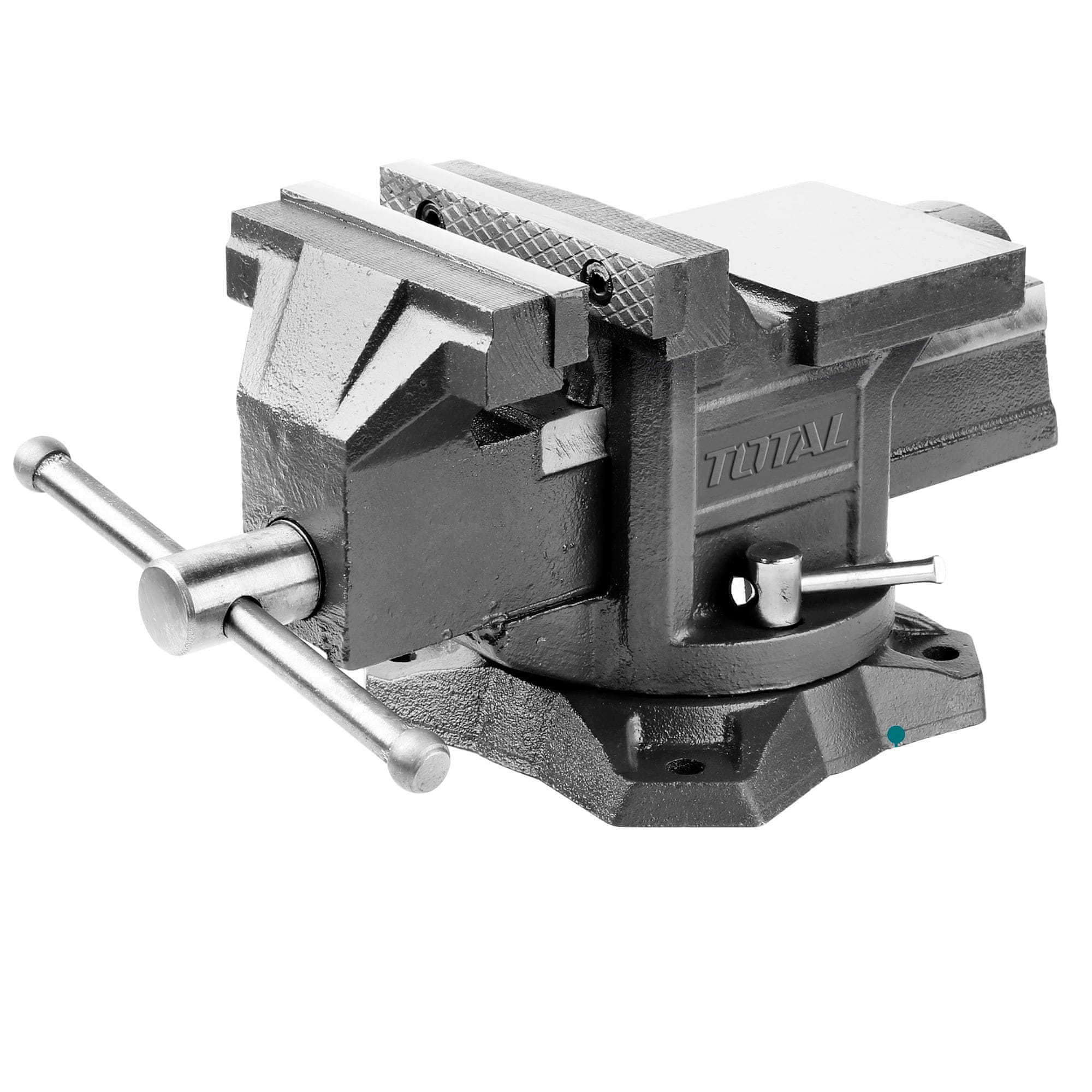 Primež TOTAL THT6186, ki se uporabljajo kot dodatno orodje za zanesljivo pritrditev delov z močnim pritiskom drug na drugega, bodo postale zanesljivi pomočniki pri različnih gradbenih, ključavničarskih projektih ter delavnicah. Učinkovitost orodja zagotavlja trdna pritrditev delov, prisotnost nakovalnih delov iz močnega litinega železa ter vrtljivo konstrukcijo (zmožnost vrtenja okoli svoje vodoravne osi za 360 °). Obremenjujejo 21 kg, delovni hod znaša 200 mm. Za delo se pritrdijo na delovno mizo. Maksimalna sila prijemnega stiskanja je 2500 kg, kar ta ključavnice naredi idealno orodje za delo z zelo težkimi in obsežnimi predmeti. Ročaj vijčnega zategovanja ima kovinske obloge in je udoben pri delu.