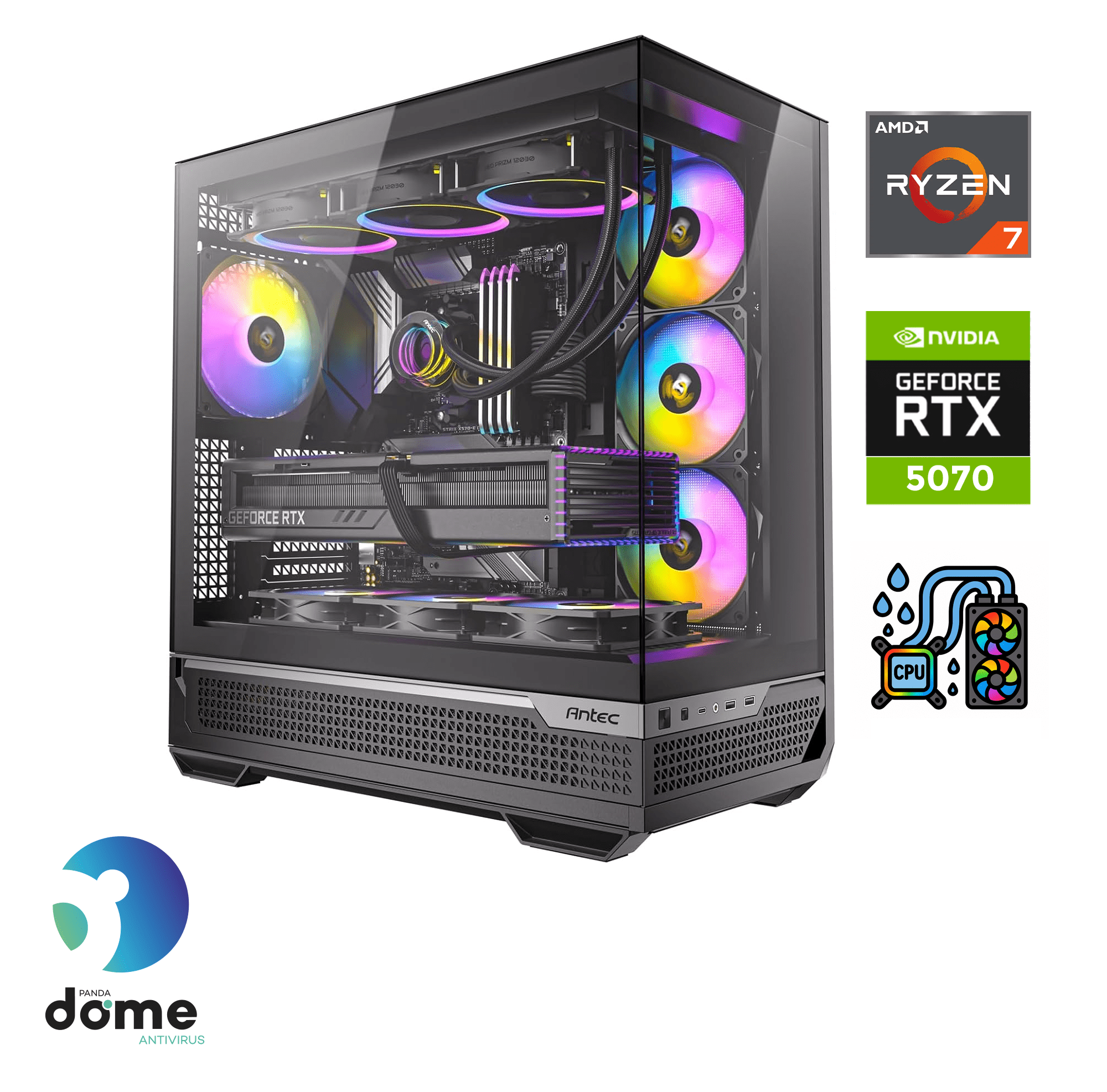 Poganja ga zmogljiv procesor AMD Ryzen™ 7 9700X. Vrhunsko grafično in igralno izkušnjo zagotavlja samostojna grafična kartica Nvidia GeForce RTX 5070 z 12 GB grafičnega pomnilnika.