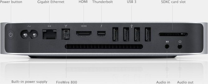 Apple Mac mini je idealna družba v dnevni sobi ali pa na pisalni mizi, kjer je pomanjkanje prostora. Kljub njegovi velikosti zmogljivost ni prav nič okrnjena. Prav nasprotno, tale malček je dejansko kos veliko večjim bratom. V majhni škatli, ki bo našla svoje mesto prav v vsakem kotičku, se namreč skriva Intel Core i5 dvojedrni procesor z 2,6 GHz moči (turbo boost do 3,1 Ghz), kar je zagotovilo, da boste brez težav uživali v vaši glasbi, slikah ter filmih. Veliko dela je bilo vloženega v tiho delovanje, tako da vas ne bodo motili nadležni ventilatorji med gledanjem najljubšega filma ali poslušanjem najljubše pesmi. Kljub majhnem kompaktnem ohišju ponuja poleg štirih USB 3.0 še Thunderbold, HDMI, Gigabit Etherner, FireWire priključke ter režo za kartice SDXC.
