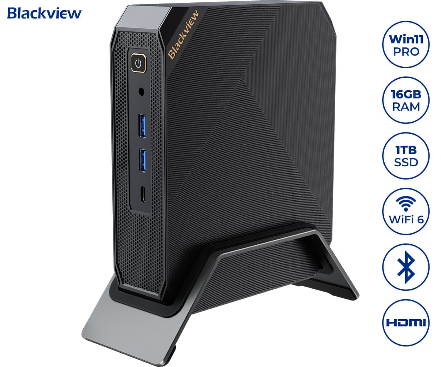 Odločite se za zmogljivo rešitev za delo, zabavo in profesionalno uporabo, ter izberite najnovejši namizni mini računalnik Blackview MP200! Mini PC z operacijskim sistemom Windows 11 PRO in odlično ceno ter kakovostjo vas bo navdušil z naprednimi lastnostmi, specifikacijami in strojno opremo: