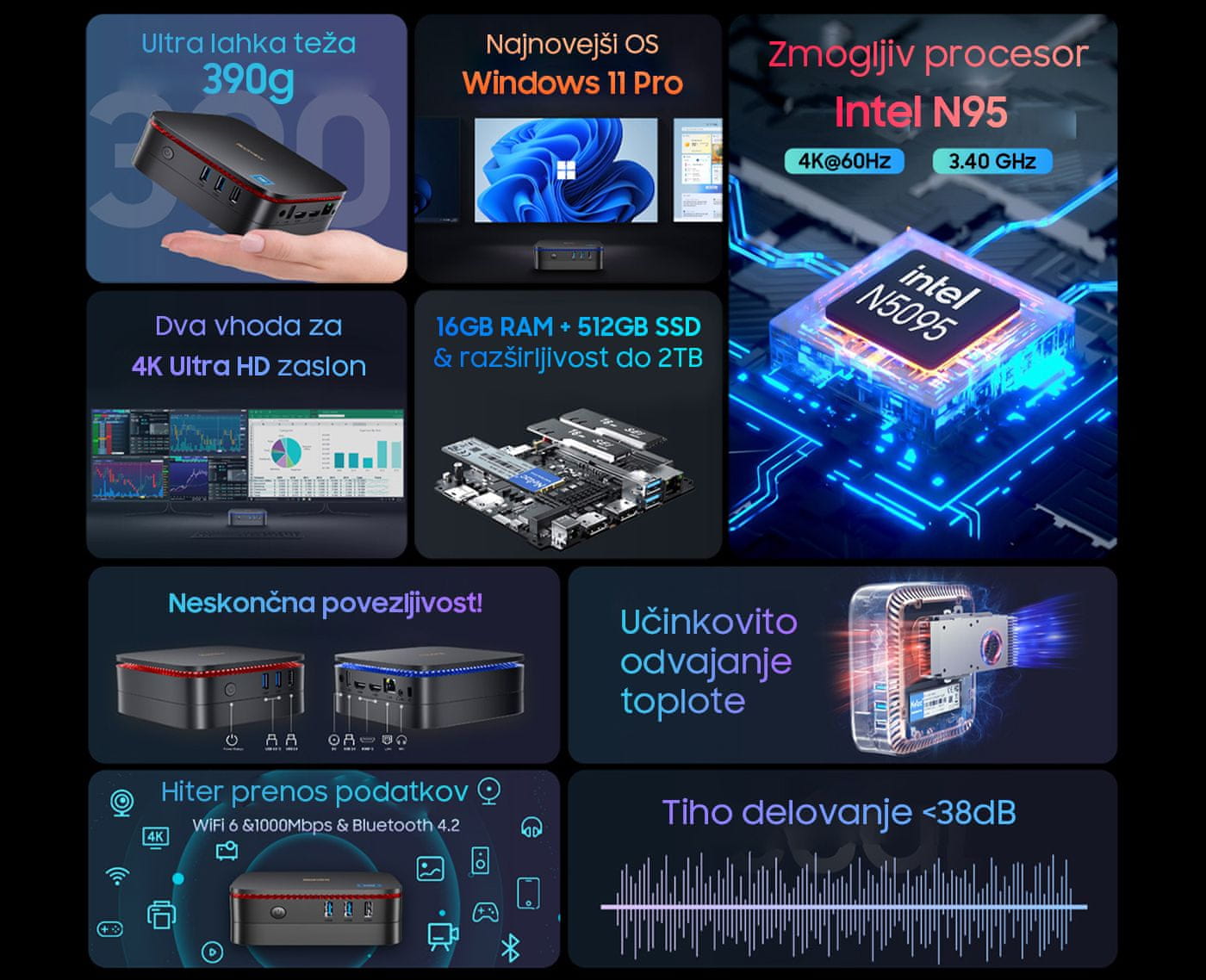 - mini računalnik Blackview MP60 (16GB, 512GB, Intel N95, Win 11 Pro)