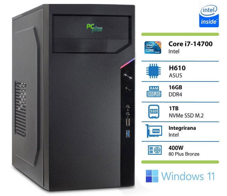 Poganja ga 20-jedrni procesor Intel® Core™ i7–14700, integrirana grafika Intel® UHD Graphics 770 pa bo poskrbela za brezhiben prikaz multimedije.