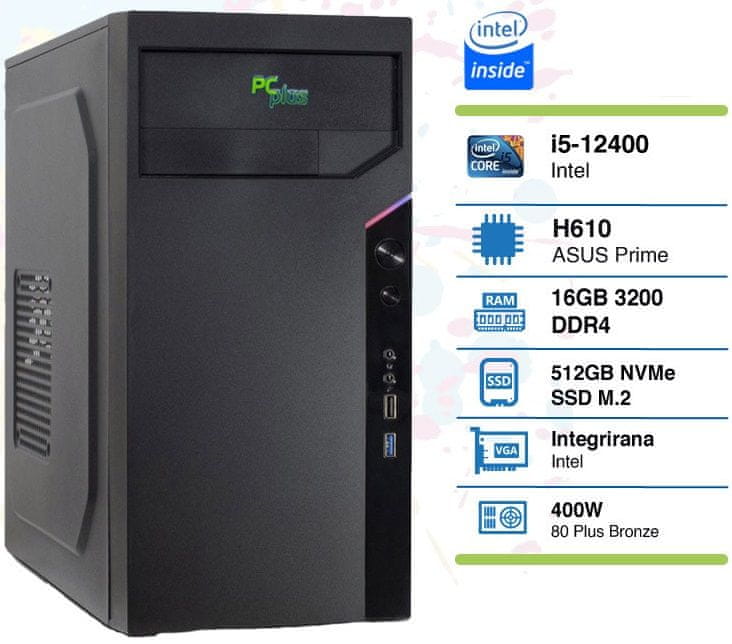 PCplus School namizni računalnik, i5-12400, 16GB, SSD512GB, W11P EDU (144721)