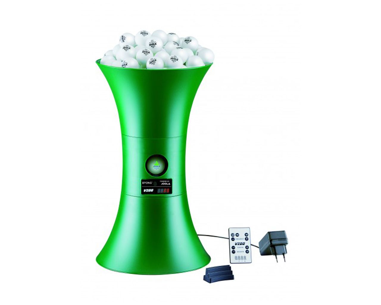 Preprosto sestavljiv. Nastavimo lahko topspin, backspin in frekvenco žogic med 20 in 70 na minuto.
