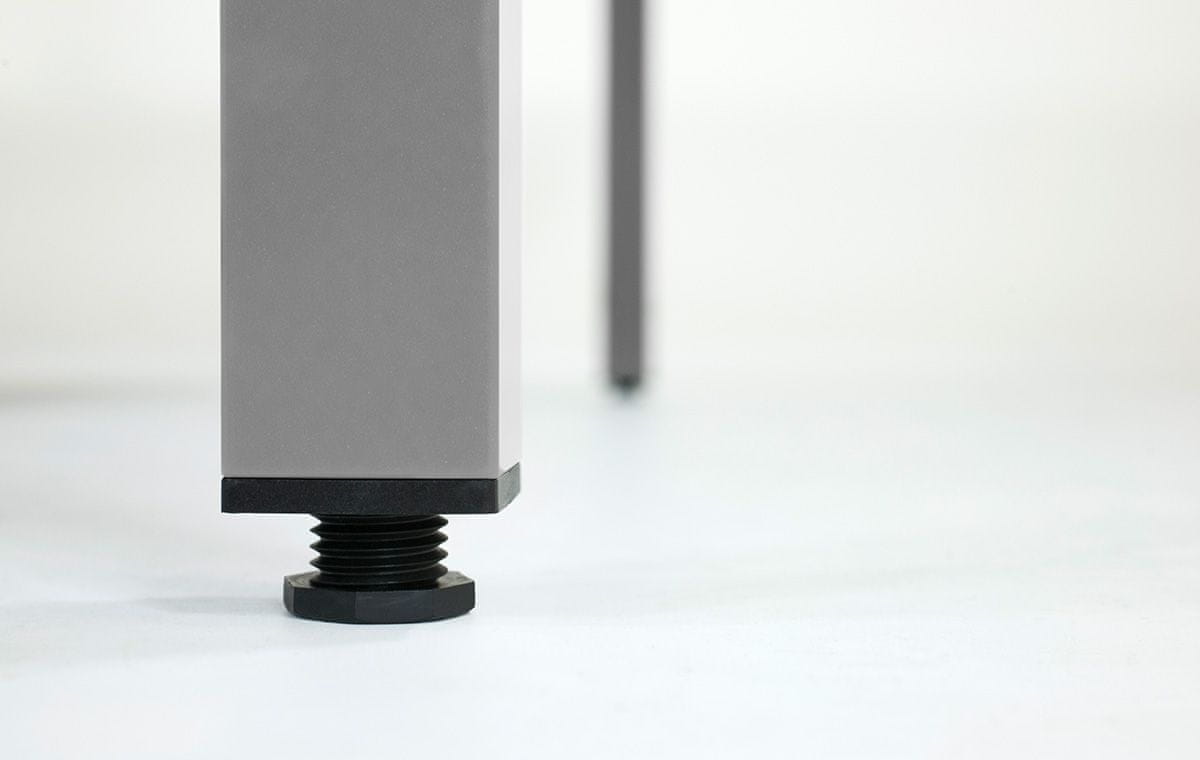 - Noge: 40 × 40 mm anodiziranega aluminija, mehanizem za nastavitev višine in izravnavo neravnih tal