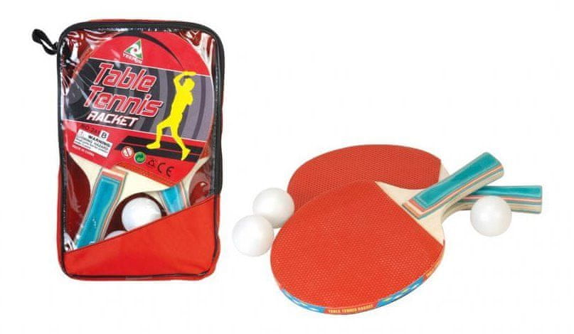 Garnitura za namizni tenis, ping pong, ki je primerna za rekreativno igranje. Paket vsebuje: 2× palico in 3× žogico, shranjena v praktični embalaži. Celoten opis