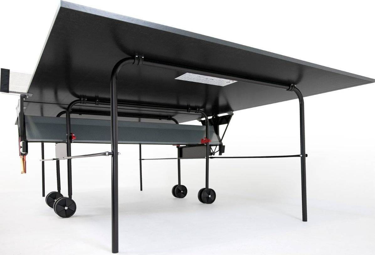 Miza za namizni tenis priznanega nemškega podjetja Sponeta. Priročna kolesa omogočajo enostaven transport. V skladu s standardom EU EN-14468–1 je miza varna za otroke; razdalja med zloženima miznima ploščama ne predstavlja nevarnosti zagozditve. Namenjena za uporabo v zaprtih prostorih, za začetnike.