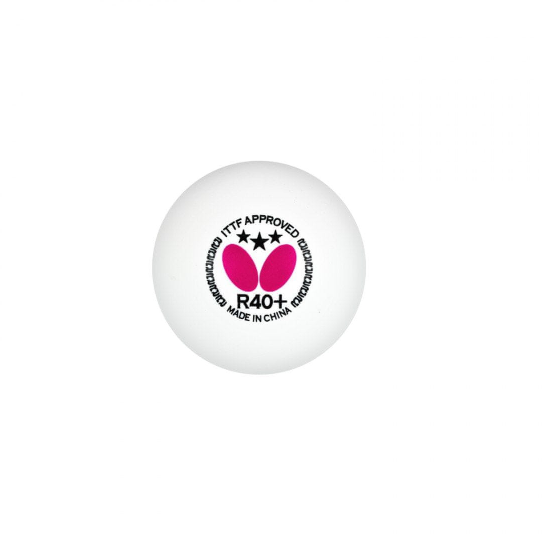 Žogice za namizni tenis BUTTERFLY *** White – 3 kosi so stalno izboljšana različica tretje generacije žogic BUTTERFLY. Žogica R40+ s tremi zvezdicami, izdelana pod strogim nadzorom kakovosti, je zelo enakomerna ter zagotavlja stabilno vrtenje, hitrost in ravnotežje. Njena visoka natančnost zagotavlja dosleden odboj, zanesljivo trajektorijo in je trajnejša od prejšnjih generacij.