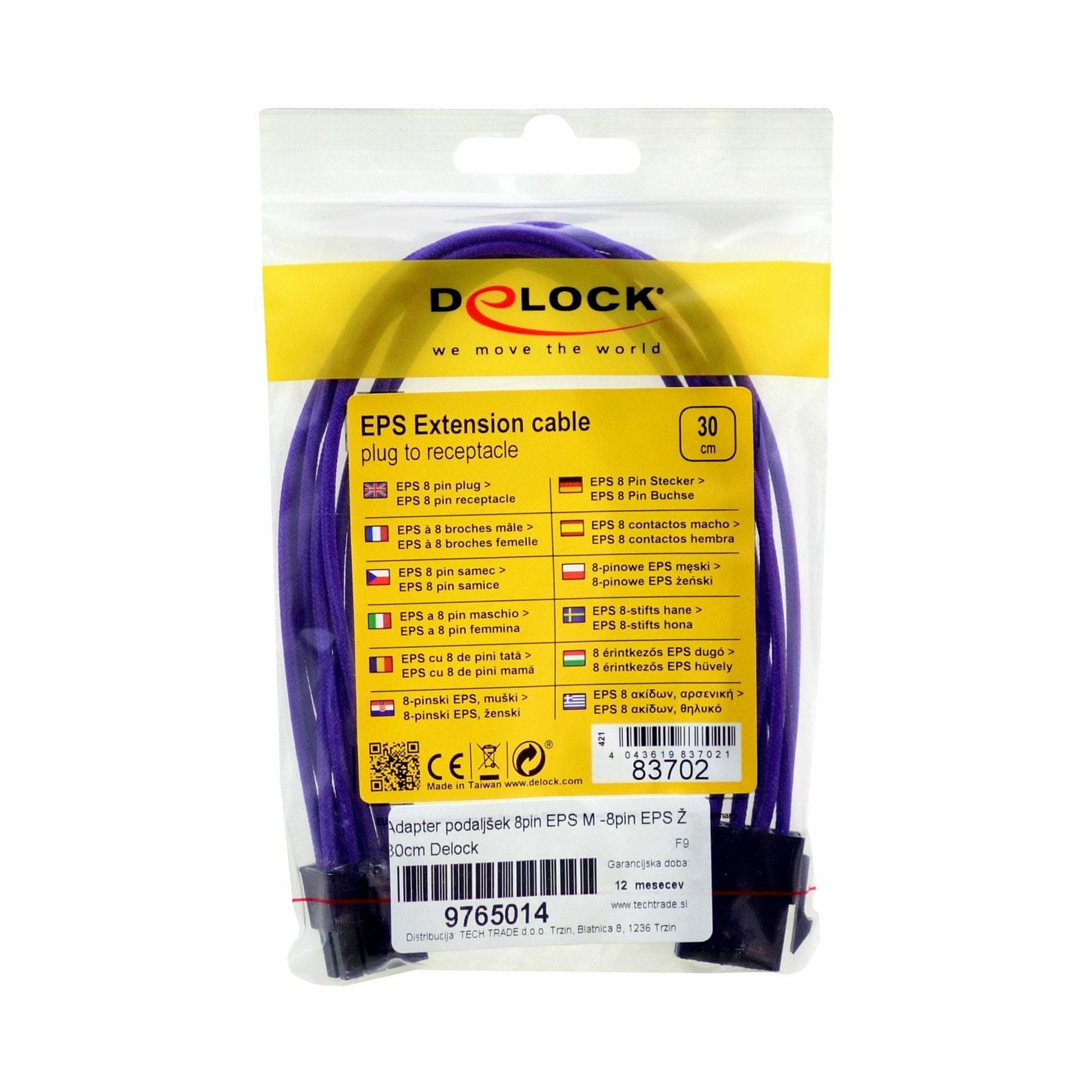 Delock adapter podaljšek 8pin EPS M - 8-pin EPS Ž 30cm 83702