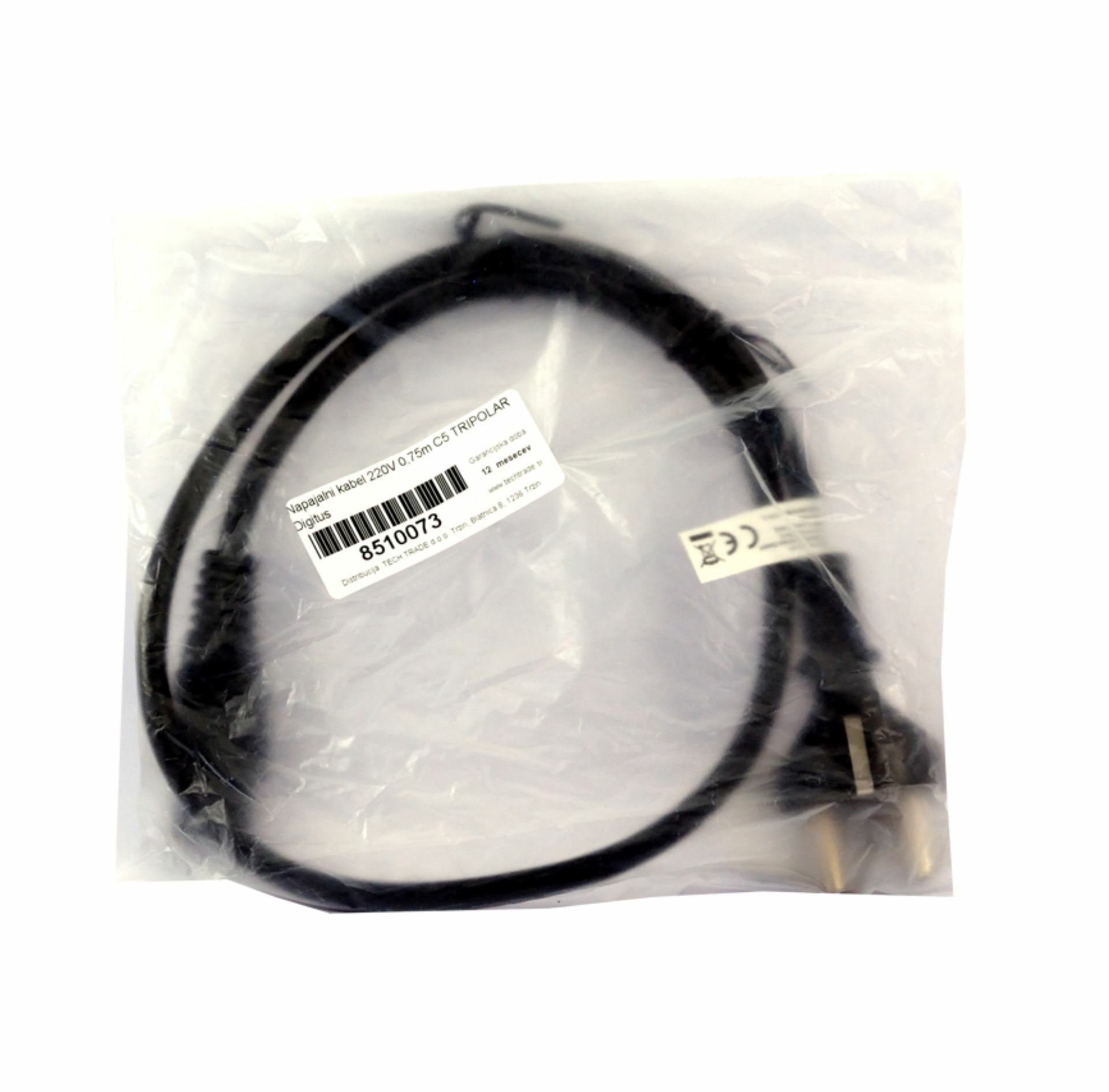 DIGITUS napajalni tripolni kabel C5 TRIPOLAR, 10A / 250 V, za napajalnike prenosnih računalnikov, dolžine 0,75m.