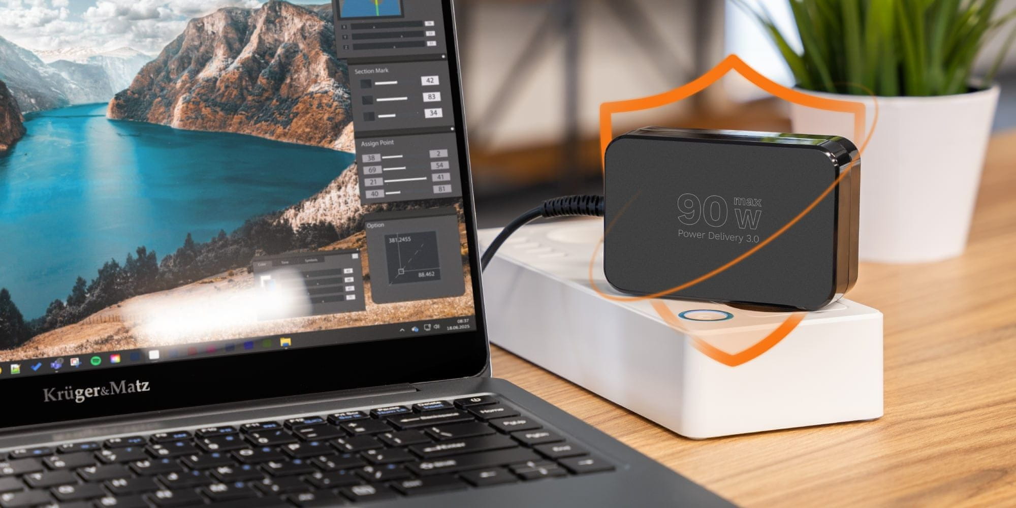 Vrata USB-C s tehnologijo Power Delivery omogočajo polnjenje ne le prenosnikov, temveč tudi pametnih telefonov, tablic in drugih elektronskih dodatkov. Zahvaljujoč izhodni moči 90 W in inteligentnemu prilagajanju parametrov je polnjenje hitro in varno. Ta sodobna rešitev združuje funkcionalnost več polnilnikov v eni kompaktni napravi.
