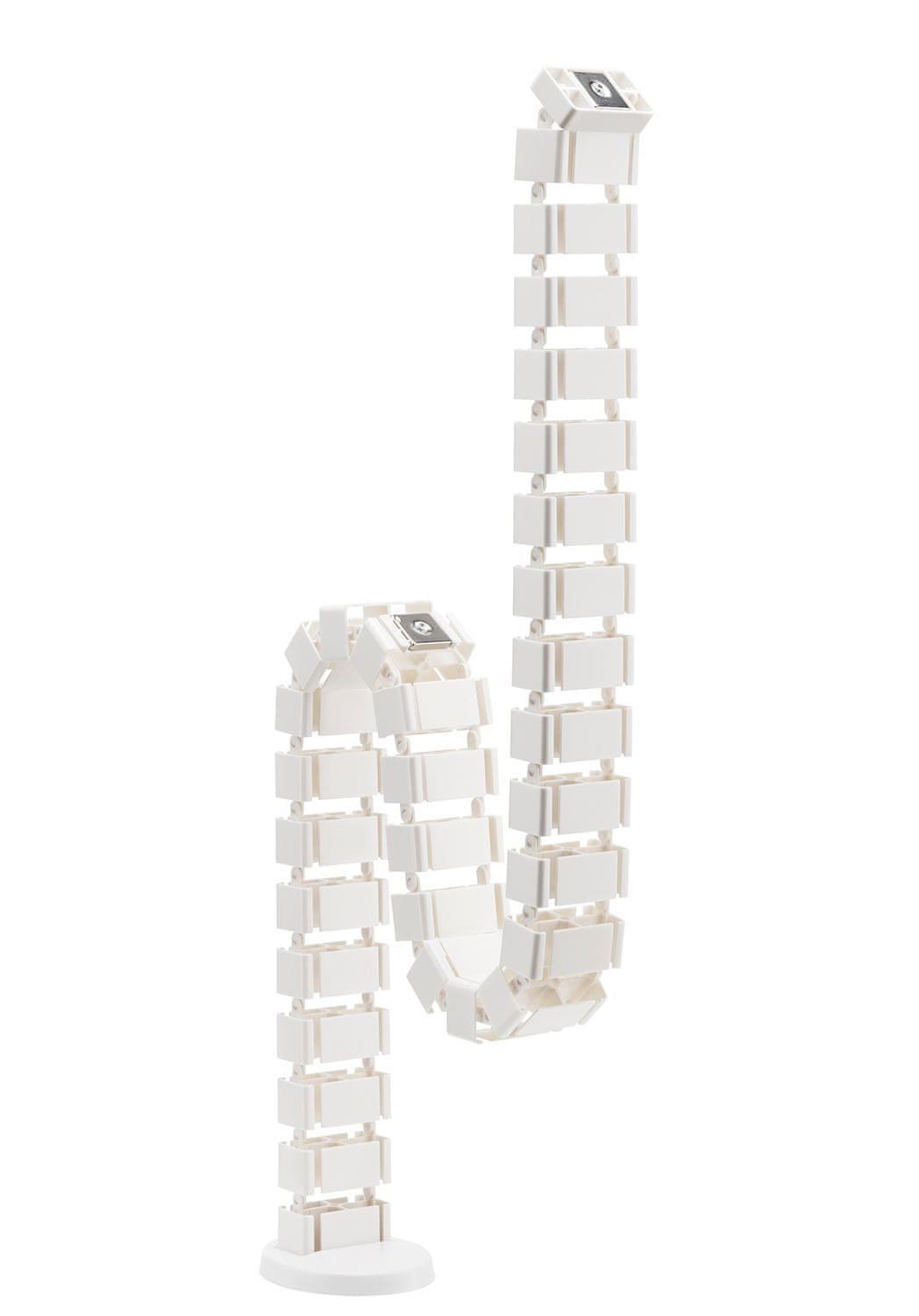Vodilo za kable, ki preprečuje zapletanje kablov in jih učinkovito maskira. Videz spominja na hrbtenico. Zagotovil bo estetski dodatek vaši delovni postaji. Dolžina 1300 mm. Pravokotni bloki. V beli barvi. Vgrajeni magneti za enostavno namestitev.