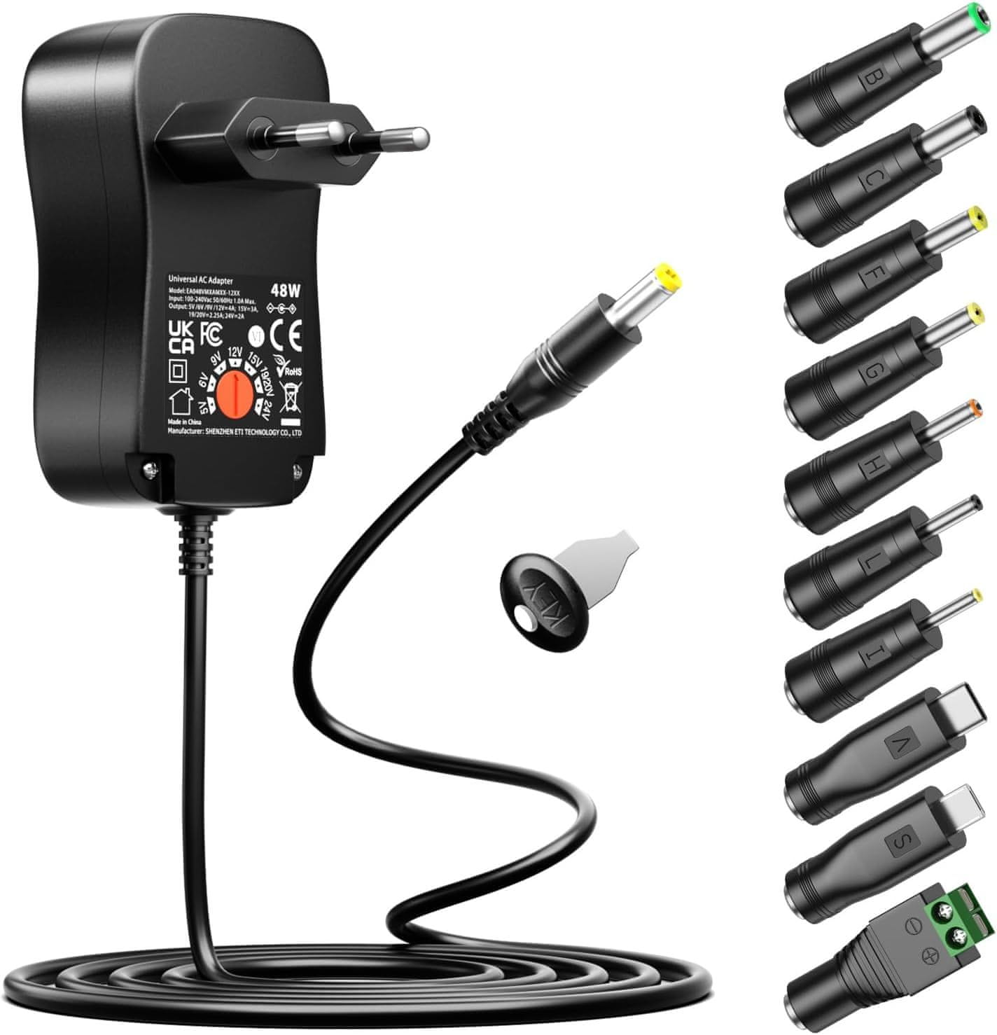 slomart 48W Univerzalni Napajalnik AC DC 5V-24V z 10 DC Vtiči - LED, Elektronika. 4000mA Max. Adapter za Različne Naprave.