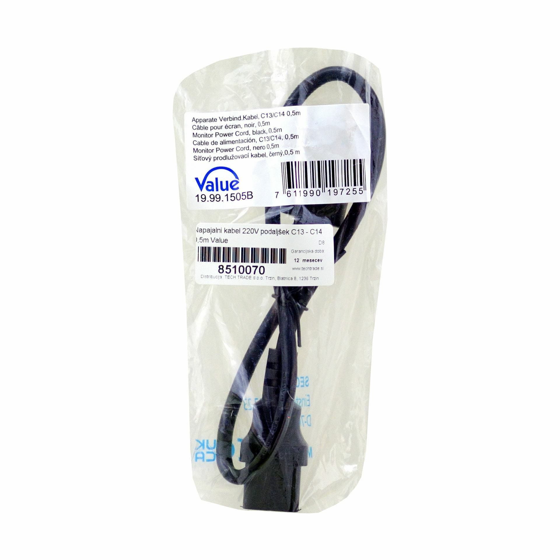Value napajalni kabel 220V podaljšek 0,5m C13-C14
