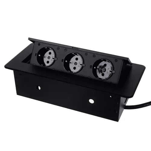 Trojná skritá vtičnica za delovne mize predstavlja praktično in elegantno rešitev za napajanje v različnih prostorih. S tremi ozemljenimi Schuko vtičnicami, ki so izdelane iz kakovostnega aluminija s prašnim premazom, omogoča enostavno namestitev neposredno v delovno mizo v vertikalni ali horizontalni legi. Po pritisku na gumb v pokrovu se vtičnice samodejno izvlečejo, kar vam omogoča, da imate napajanje vedno pri roki, ne da bi morali izgubljati čas z iskanjem prostih vtičnic.