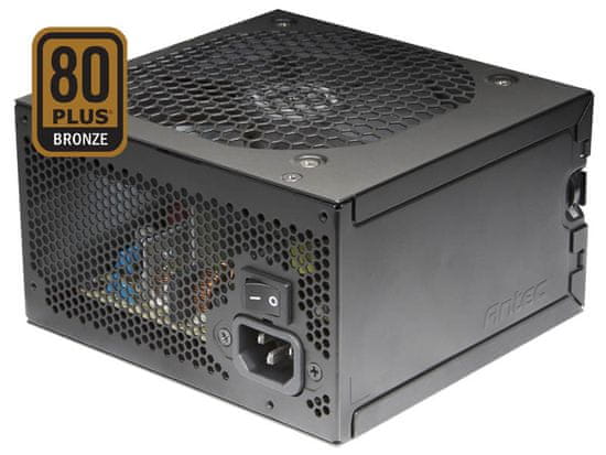 Odličen napajalnik znaneg proizvajalca Antec z močjo 550 W in 80 Plus Bronze certifikatom ponuja visoko kvaliteto. 550 W je več kot dovolj za sisteme z najmočnejšimi enojedrnimi grafičnimi kartici.
