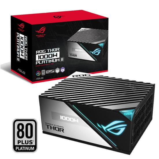 ROG Thor 1000W Platinum II je najtišji PSU v svojem razredu. Lambda A++ certifikat potrjuje, da najnovejši Thor upravlja vso svojo moč v popolni tišini. ROG hladilna telesa pokrivajo kritične komponente, kar zagotavlja nižje temperature in zmanjšan hrup. 135 mm Axial-tech ventilator z nadzorom PWM zagotavlja nižji hrup in ohranja nadzor nad toploto. Zgrajen z nizko ESR kondenzatorji in drugimi vrhunskimi komponentami za doseganje certifikata 80 Plus Platinum. OLED zaslon spremlja porabo energije v realnem času. Združljivost z Aura Sync vam omogoča prilagajanje in sinhronizacijo svetlobnih učinkov z drugo združljivo strojno opremo.