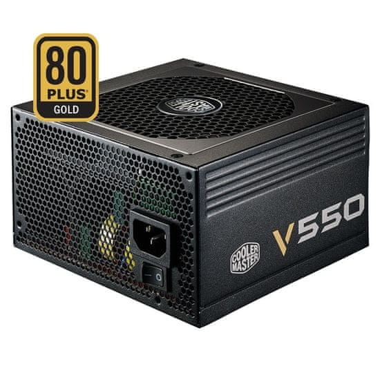 Računalniški modularni napajalnik Cooler Master V550 ponuja visoko kvaliteto in zanesljivost. Za izgradnjo so uporabljeni samo najboljši in najkvalitetnejši materiali z japonskimi kondenzatorji. Kvaliteto pa izkazuje 80+ Gold certifikat, kar pomeni odlično učinkovitost in s tem prihranek na električni energiji. Modularni dizajn koristi močno 12V linijo in zmanjša število nepotrebnih kablov in nudi izboljšano upravljanje s kabli. Hladi ga 120 mm pametni ventilator, ki prilagaja svoje hitrosti glede na temperaturo in zasedenost. 550W zagotovljene moči pa zadostuje za vse pisarniške ali multimedijske računalnike in je dobra izbira za večino gaming sistemov z eno grafično kartico.
