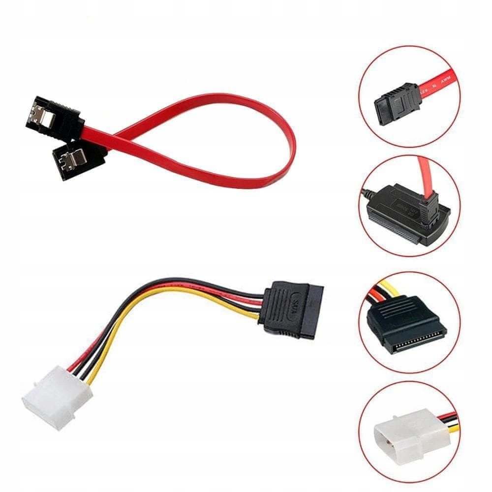 V kompletu prejmete adapter, ki je kompatibilen s SATA diski (2.5” in 3.5”) in optičnimi pogoni (CD/DVD), ter ločen napajalnik, ki zagotavlja stabilno delovanje. Z njim lahko uporabljate tudi večje 3.5” diske, ki potrebujejo dodatno napajanje. Ne potrebujete nobenih gonilnikov; preprosto priključite adapter in začnite z delom. Je popoln pripomoček za tehnične serviserje, računalniške navdušence ali za vse, ki želijo enostavno rešiti težave z diski.