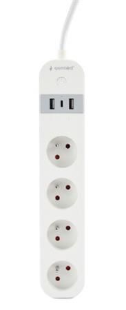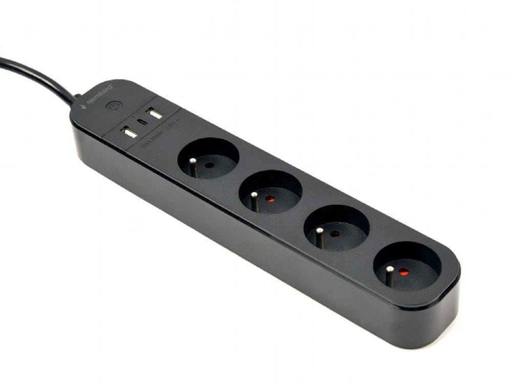 Gembird pametni podaljšek s polnilnikom USB, 4 francoske vtičnice, črn
