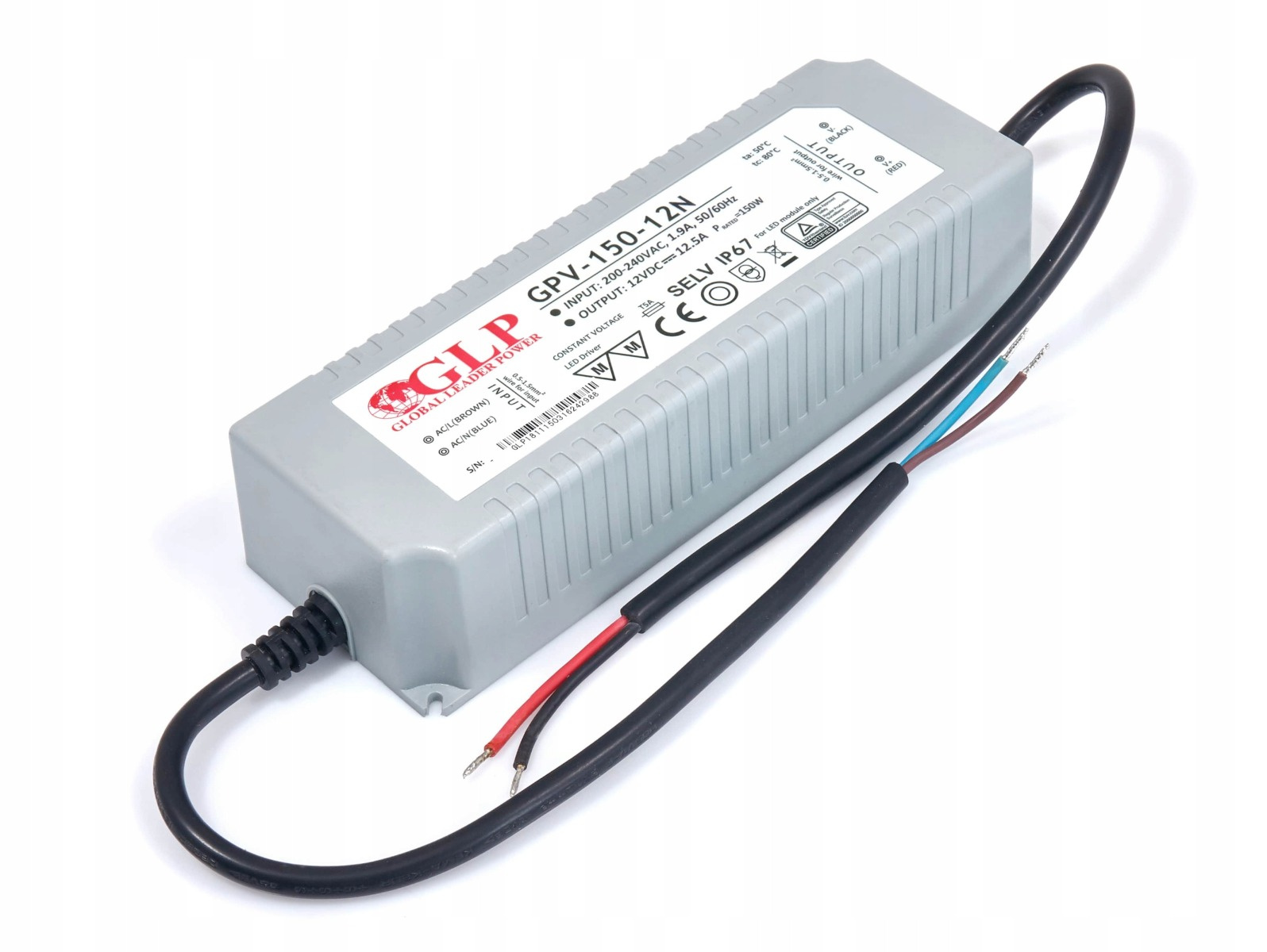 150 W 12,50 A 12 V DC LED napajalnikje idealna rešitev za napajanje LED razsvetljave v zahtevnih zunanjih razmerah. Z oznako IP67 je napajalnik popolnoma odporen na prah in vodo, kar zagotavlja njegovo zanesljivost in dolgo življenjsko dobo tudi v težkih vremenskih razmerah.Visoka moč in učinkovitostNapajalnik zagotavlja