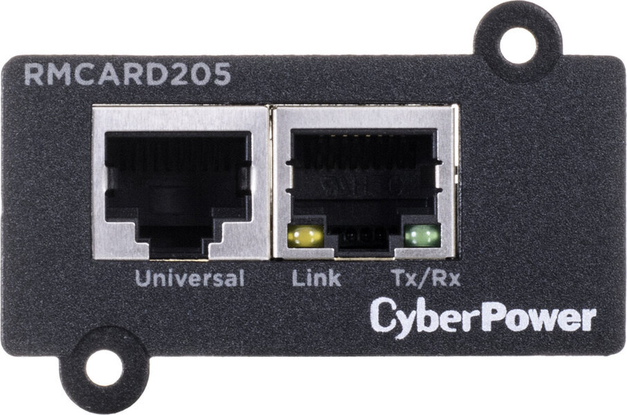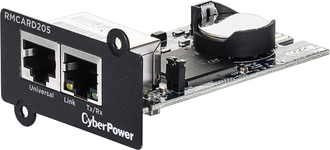 CyberPower RMCARD205 je dodatna možnost upravljanja, ki je na voljo za določene serije naprav CyberPower UPS. Z vstavitvijo kartice v omrežna vrata SNMP/HTTP na napravi UPS lahko uporabniki na daljavo spremljajo in upravljajo naprave v zaledni pisarni, strežniški sobi ali podatkovnem centru prek standardnih spletnih brskalnikov ali sistema za upravljanje omrežja (NMS) svojega omrežja. Upravljajo lahko tudi naloge, vključno z načrtovanim izklopom, zagonom in ponastavitvijo naprave.