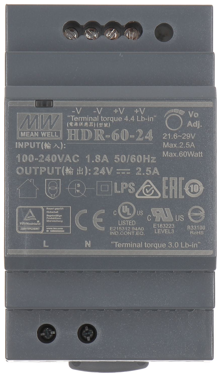 • Izhodna napetost: 24 VDC