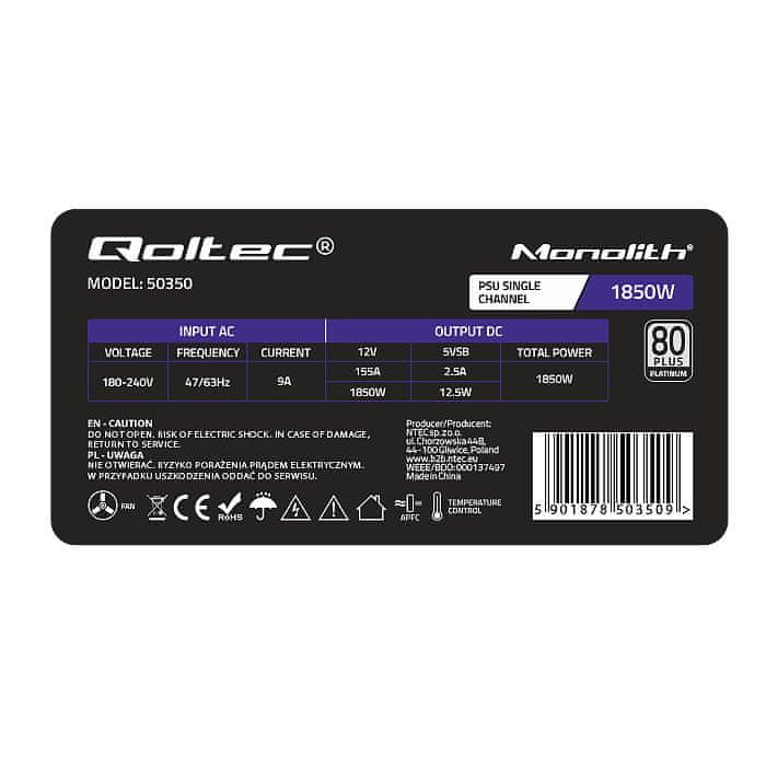 Qoltec PCI-E 1850W napajalnik | 80 Plus Platinum | Rudarjenje podatkov Celoten opis