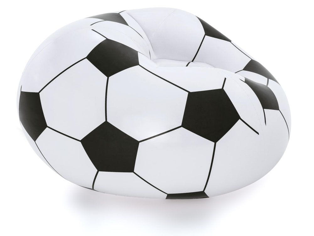 Stol je idealen kot oblikovalski kos pohištva za otroško sobo ali kot modno vrtno pohištvo za mladino. Zaradi zanimive oblike in grafike bo ta udoben puf še posebej priljubljen pri vseh ljubiteljih nogometa. Napihljiv stol je mehak in udoben, zato je gledanje tekem ali risank, igranje iger, branje, študij ali počitek na vrtu v takšnem stolu pravi užitek. Puf je izdelan iz preizkušenega trdnega, a mehkega vinila, kar je dodatna prednost. Zaradi gladke površine se enostavno čisti. Izdelek je primeren za otroke od 6 let.Tehnični podatki: