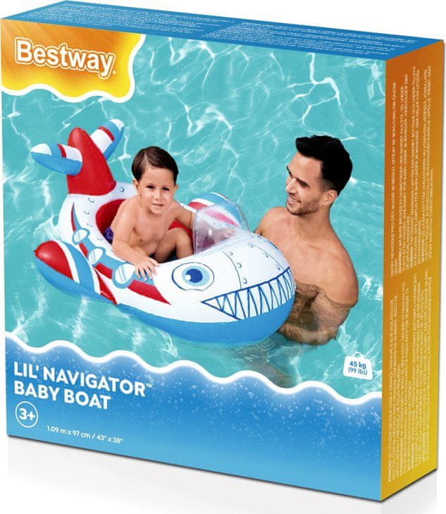 Napihljiv čoln z motivom letala. Značilnosti: