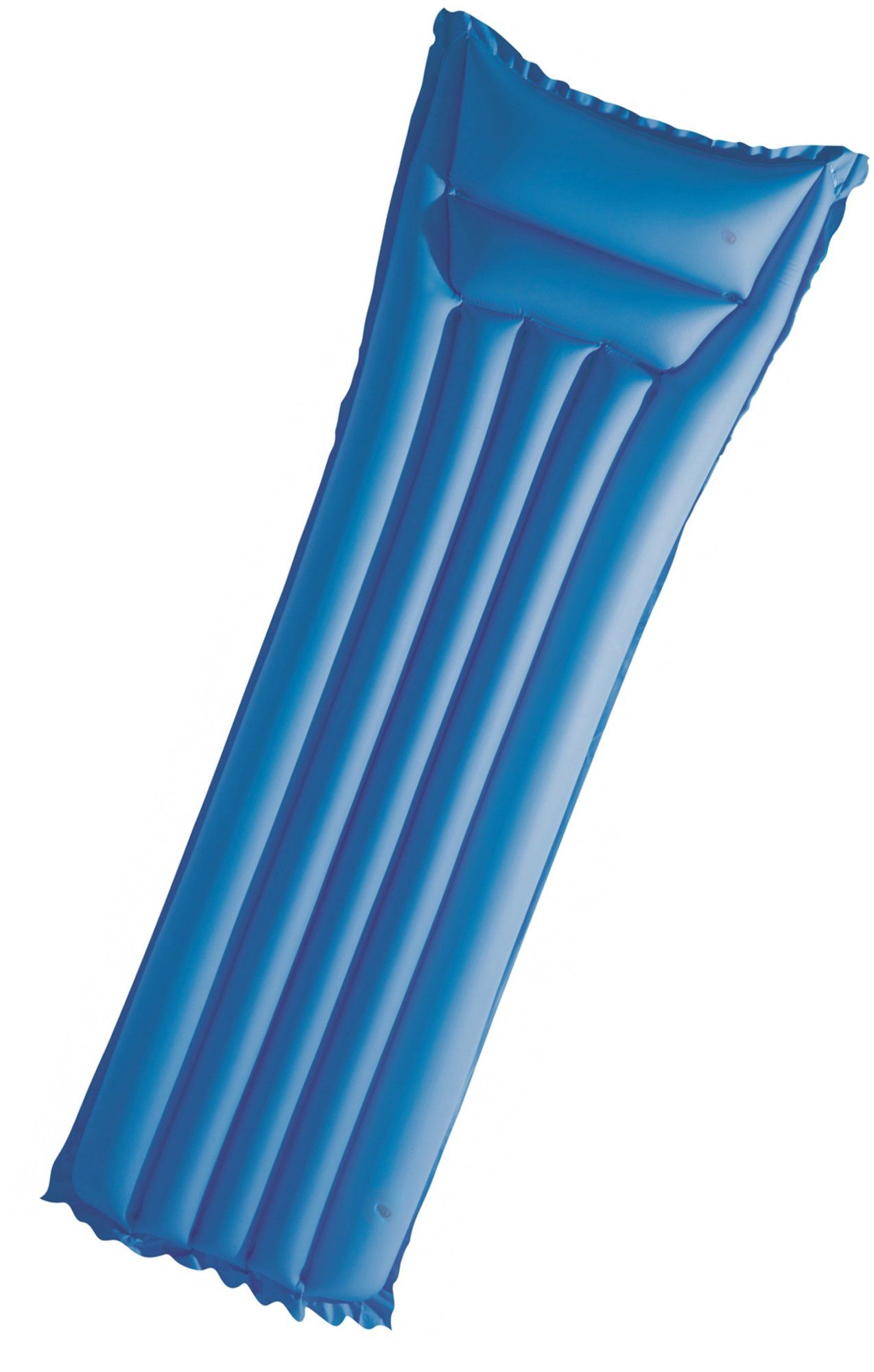 Napihljiv ležalnik z napihljivo blazino ima dimenzije 183 × 69 cm in je na voljo v modri barvi.