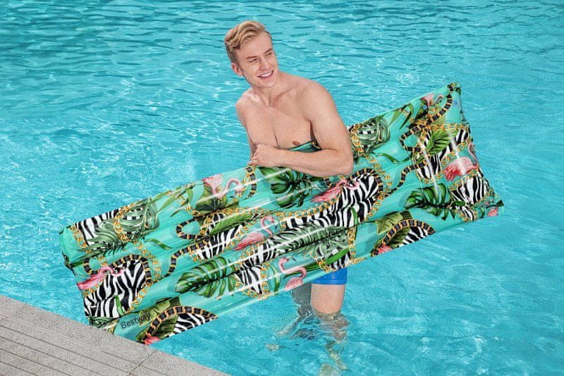 Napihljiva vzmetnica z motivom divjih živali. Celoten opis
