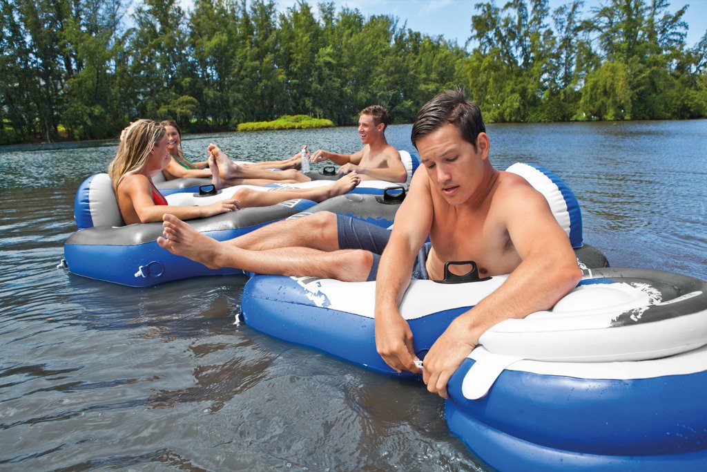 Napihljiv stol River Run je pripravljen na udobno vožnjo z oporo za hrbet in držalom za pijačo. Če gre za križarjenje dveh ali več oseb, lahko stole priročno združite.